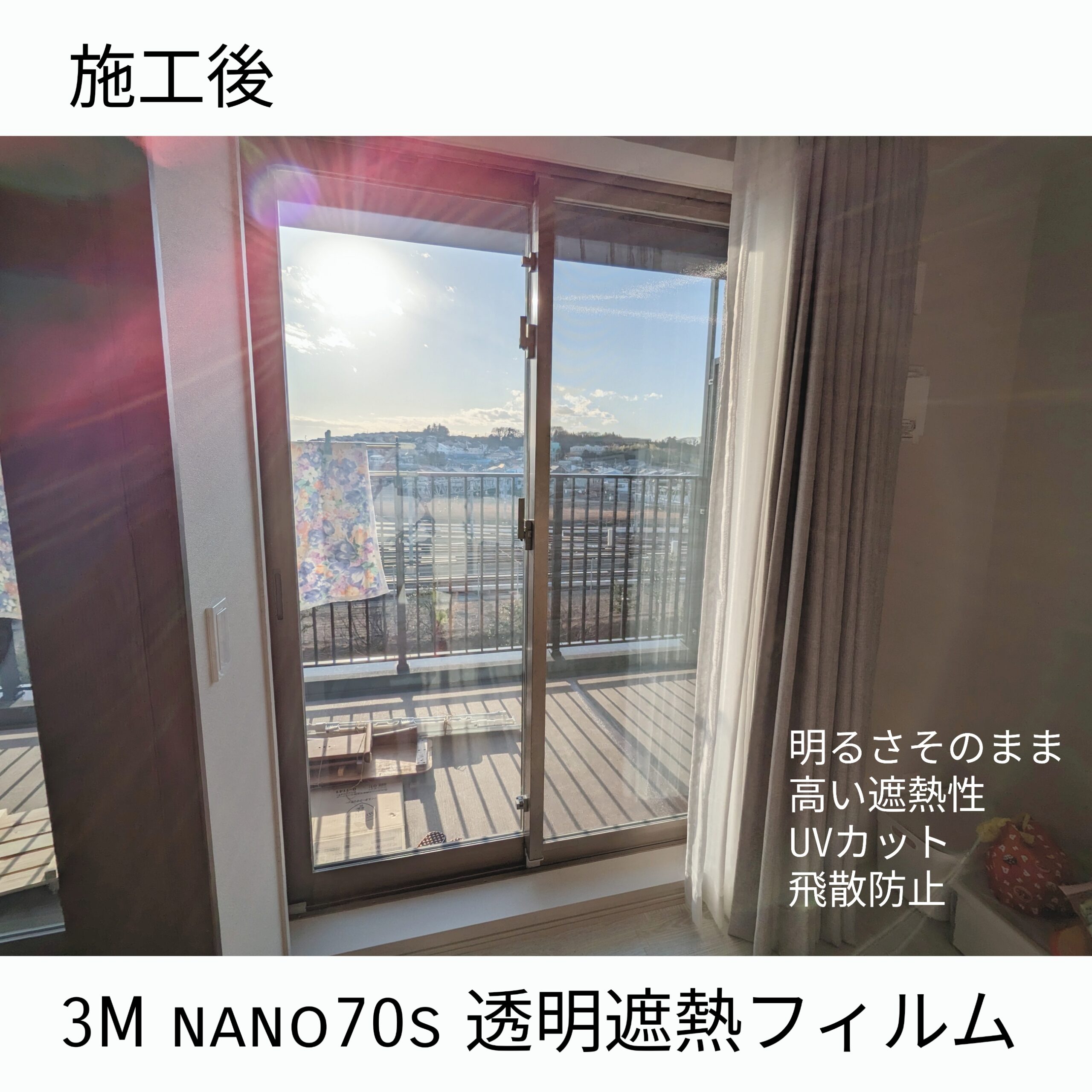遮熱フィルムなら太陽熱を遮断して室内への 暑さの流入を防ぐから、部屋の暑さを軽減します。